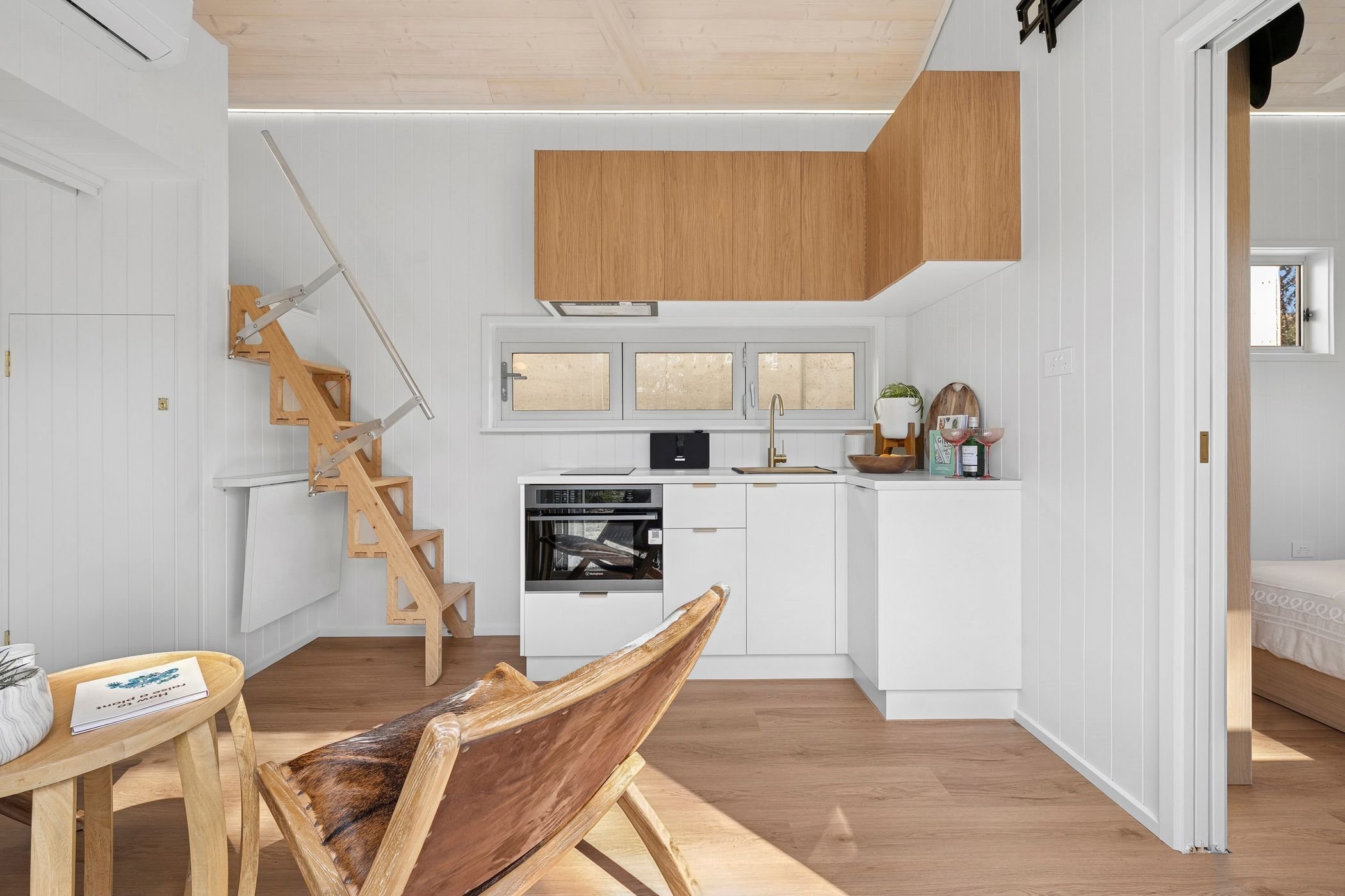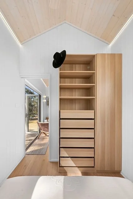 The NÖRD Haus is the newest addition to the Little Luxe Haus collection—a Scandinavian-inspired tiny home that blends minimalist design with warm, natural materials and exceptional craftsmanship. At 9m x 2.5m, it offers a spacious master bedroom, a loft or office space, and a layout that feels open, refined, and inviting. From the Baltic pine lime-washed ceilings to the concealed-fix cladding and custom cabinetry, every detail has been built with precision and care by skilled local trades.