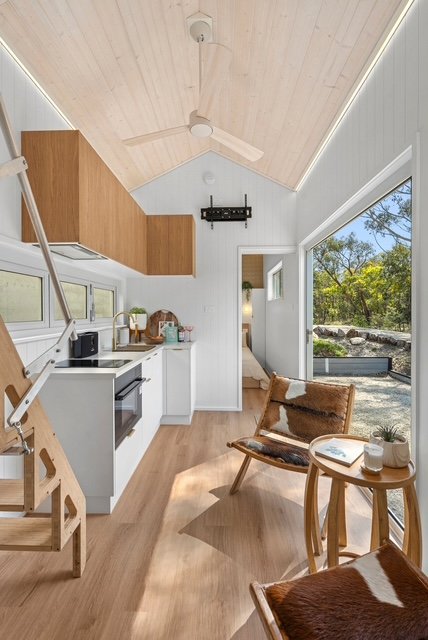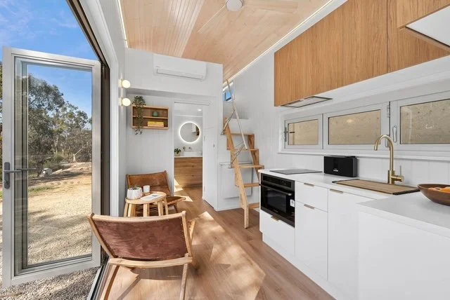 Materials are also a huge reason why people are choosing to live or stay over in a tiny. The obvious is environmental impact, we not only build tiny luxurious spaces with less materials than the traditional ‘Australian Dream” we also responsibly source locally made materials and products for the homes. For example, by choosing a model with colorbond metal cladding we have it rolled and shaped by local manufacturers, great for the local community as well as the planet. This is something we take great pride in doing.